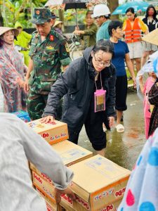 Không chỉ dừng lại ở việc quyên góp, bà Thảo còn đích thân gửi tiền mua lương thực, nhu yếu phẩm thiết yếu cho người dân vùng bị cô lập, để kịp thời giúp họ vượt qua những ngày khốn khó nhất khi nước lũ dâng cao, giao thông bị chia cắt.